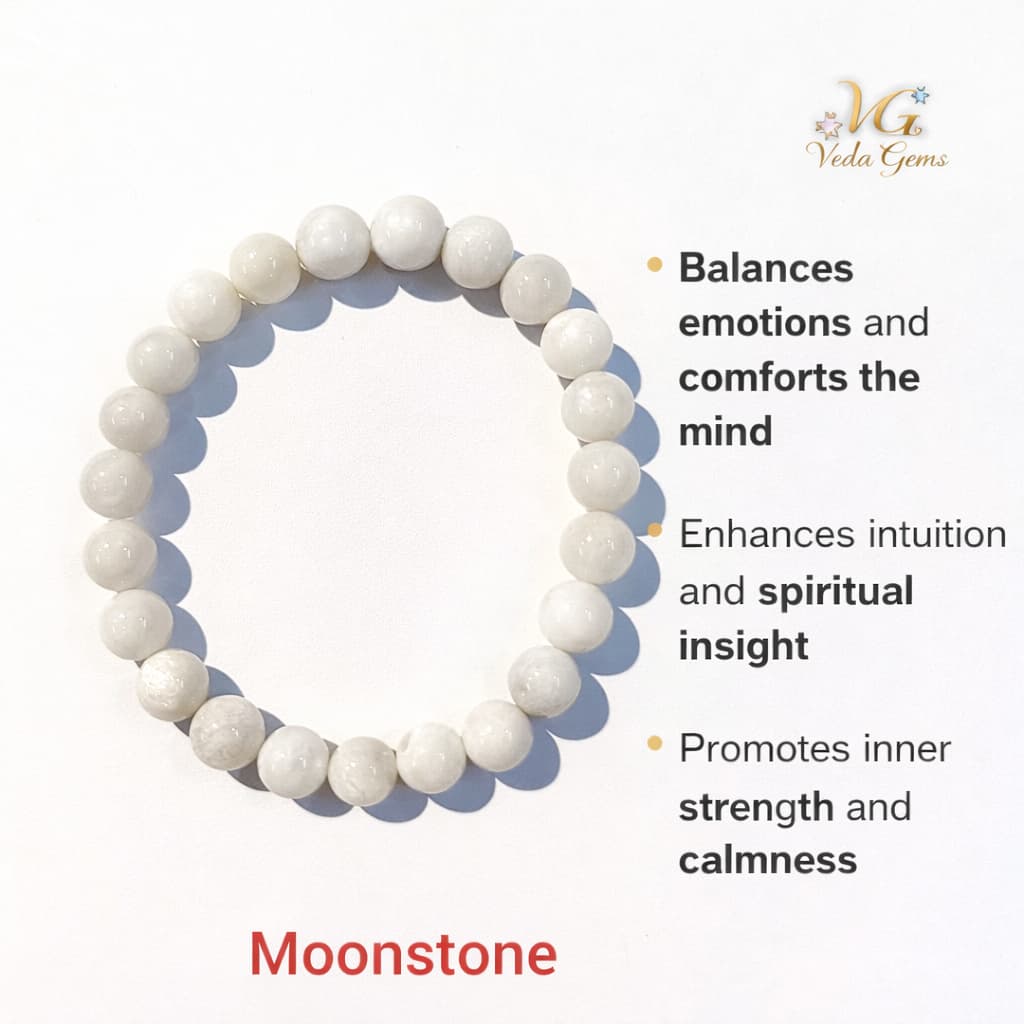 Moonstone benefits aid in digestion, alleviate menstrual discomfort and promote restful sleep. Additionally, wearing a moonstone benefits emotional healing and facilitates the release of past traumas, embracing healthier relationships in life.