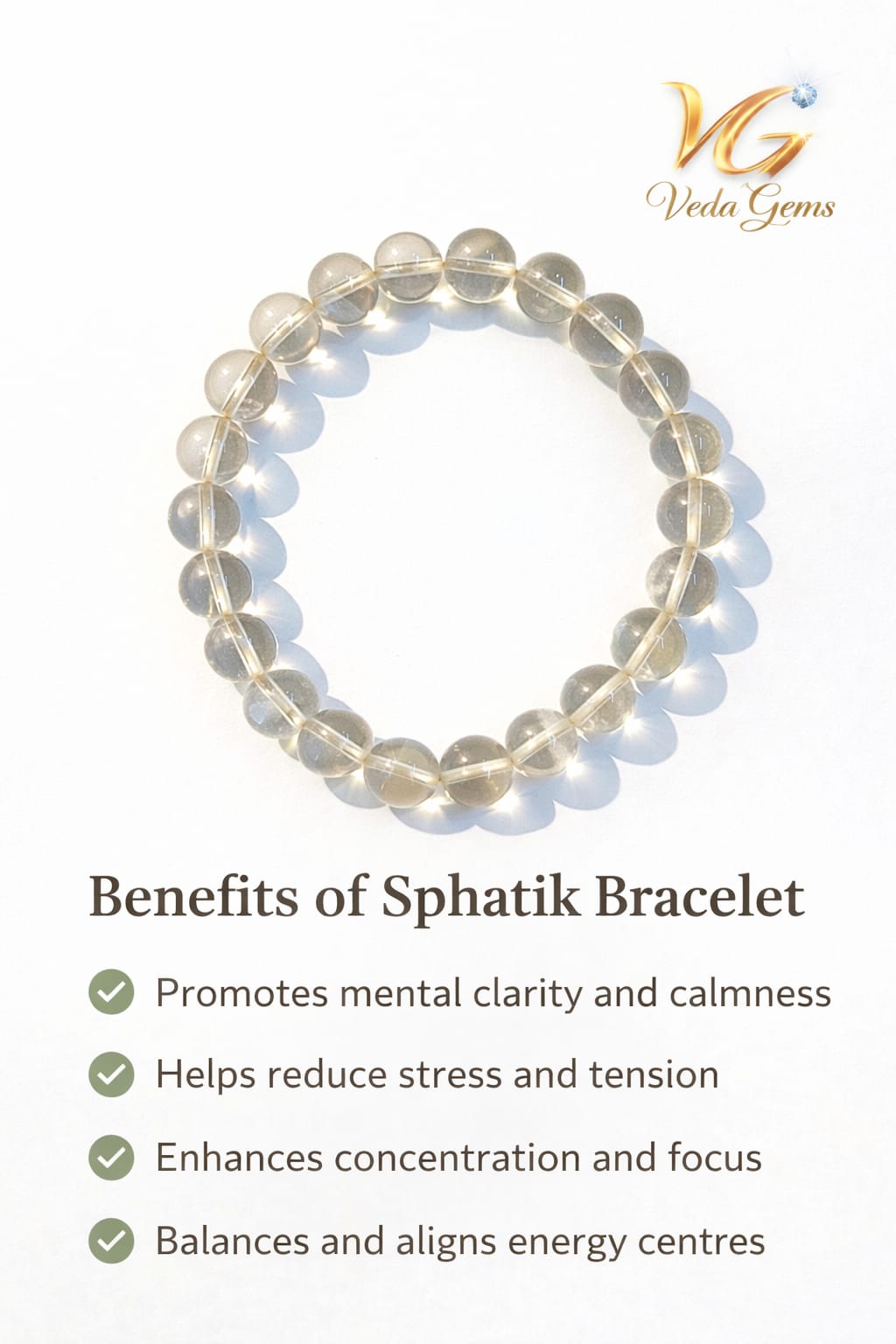 Here are the key benefits of wearing a Sphatik (Clear Quartz) bracelet: